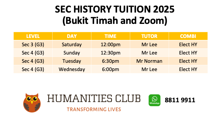 History Tuition 2025 Schedule